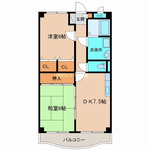 | 間取り | 2DK | 間取詳細 | 洋6 和6 DK6 |