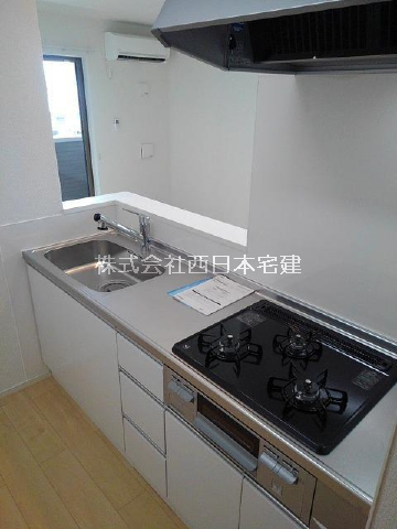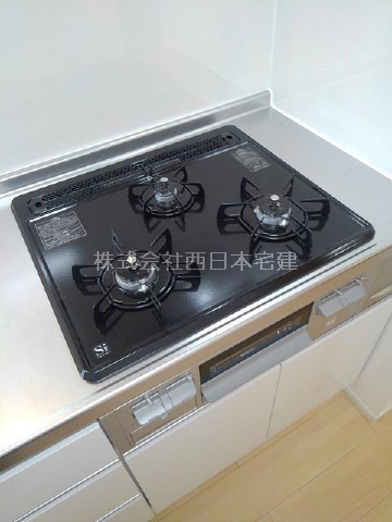 3口ガスコンロ付きの対面式カウンター+システムキッチン始め設備が充実。